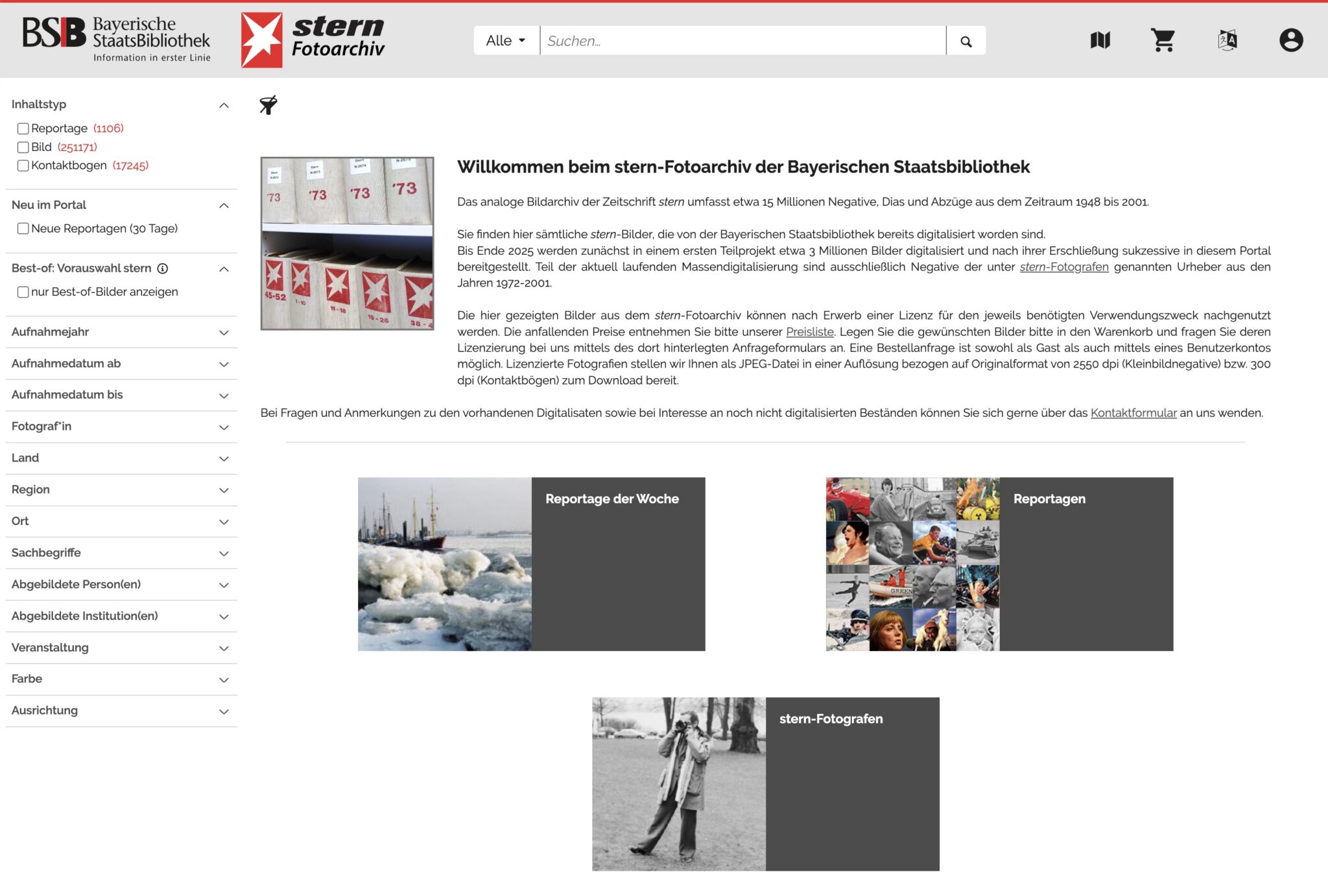 Recherche-Portal des stern-Fotoarchiv: www.stern-fotoarchiv.de