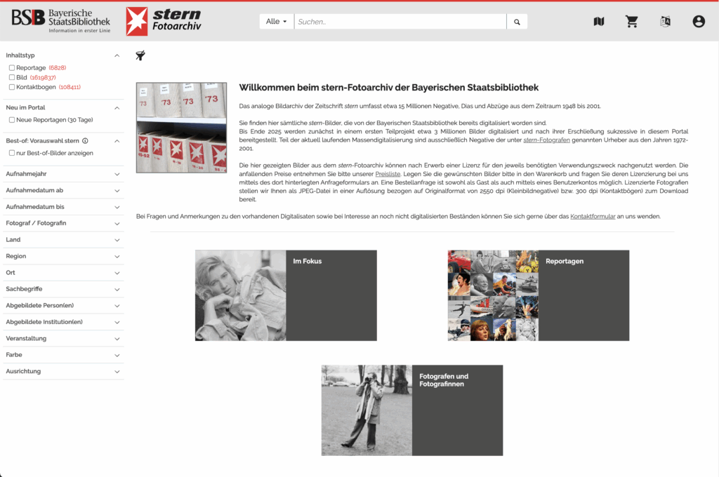 For three years, we supported the Bavarian State Library in the digitization of the stern photo archive and assisted in the setup and support of the Digital Asset Management system. In addition to the stern photo archive, the new BSB image archive also went online at the beginning of the year, replacing the former Sisis database. The service now runs entirely on fylr with a portal based on the Attention Web Platform and includes more than 250,000 entries of historical images and cartographic material.
